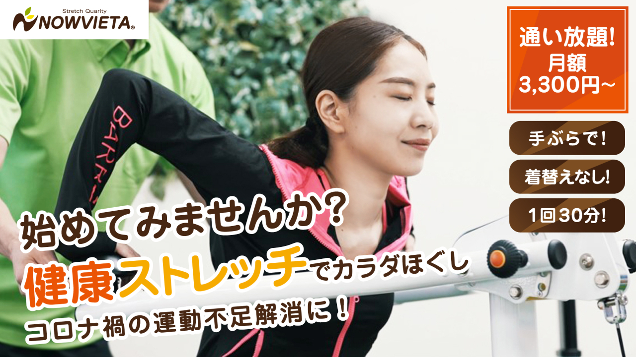 動的ストレッチマシンを使用した「健康ストレッチ」スタジオを「ノヴィータ蕨店」をJR京浜東北線の蕨駅で運営しております。お近くの方、是非体験にお越しください。